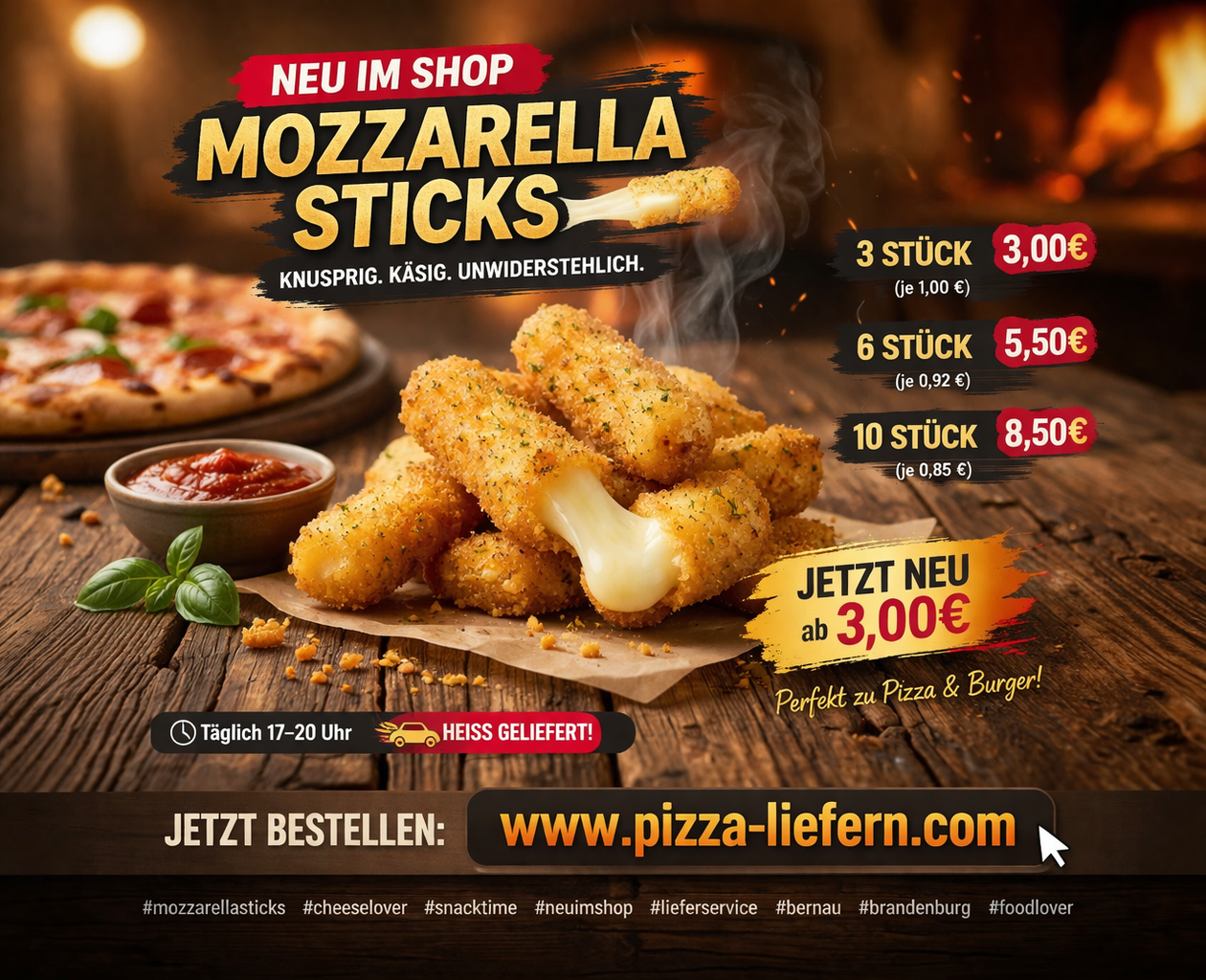 Käseklassiker mit Extra: besonders lange Mozzarella-Sticks in richtig krosser Knusperpanade. Mit feiner Butternote, einem Hauch Knoblauch und würzigen Kräutern.